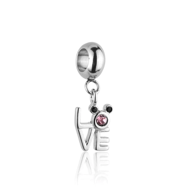 Berloque Love Camundongo em Aço Inox é o penduricalho que vai fazer seu coração bater mais forte. Detalhe em strass rosa, com um tamanho de aproximadamente 1,5 cm, esse pingente é uma homenagem ao camundongo mais querido do mundo.